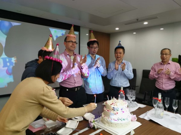 2020年4月29日下午,活動在聯合水務集團上海總部新增新裝的南豐城16樓辦公室舉行。聯合水務集團董事長兼總裁俞偉景先生、聯合水務集團高級副總裁劉猛先生、聯合水務集團高級副總裁陳樵先生、聯合水務集團高級副總裁兼CFO James Beeson先生、上海總部全體常駐員工、孟加拉項目公司部分員工共同參與了此次慶典暨生日慶祝活動。