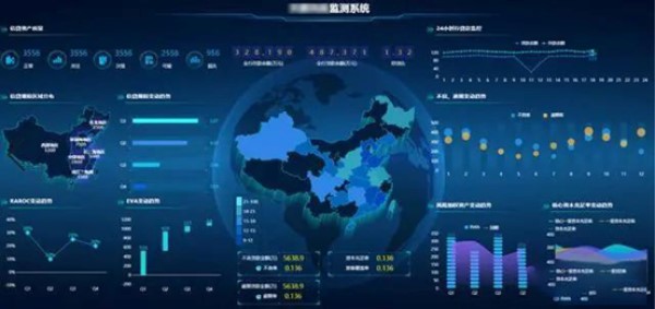 還有涉及比例的,用餅狀圖,涉及分布和關聯性分析的可以用散點圖等等。我們的智慧水務的一個方面的應用就是數據可視化,做成一個數字圖形化的大屏。如圖(效果模擬圖):