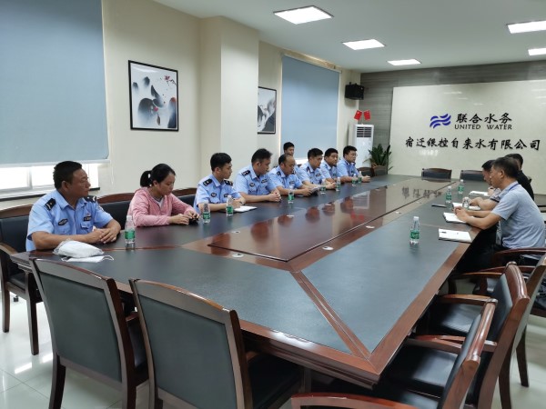 隨后,李所長針對“千警進萬企、護航促發展”活動主題,詢問我們企業在發展中有沒有遇到什么難題、困難,如勞動關系方面、安全生產方面等。公司人事行政副總經理陳少軍向李所長一行介紹到,宿遷銀控自來水有限公司在勞動關系方面屬于穩定和諧型,多年來一直給員工創造和諧、愉快的工作環境,公司對外形象及口碑均很好,并獲“江蘇省勞動保障誠信示范企業”榮譽;公司在安全生產方面也非常重視,投入大量資金用于人防、安防、技防方面建設,陳總列舉了公司在泵房反恐防恐方面、液氯管理方面、廠區周界報警方面所做的工作。同時,陳總也介紹了公司目前的上市工作進程及公司在區域供水方面遇到的困難。