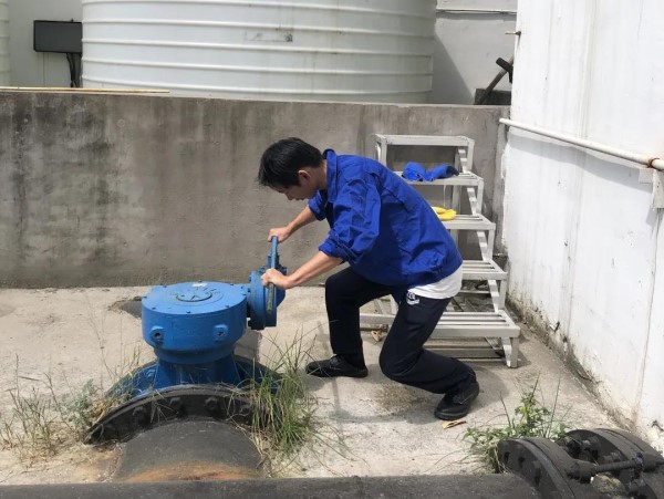 烈日下堅守,保障污水生產安全。污水凈化回用,還城市一份潔凈的世界,給市民一個清涼的夏日。桐鄉污水公司生產部運行工顧振賢像往日一樣仔細巡查著生產區,發現閥門有些松動的跡象,安全生產不可馬虎,一定要防微杜漸,他立即找來工具,使出渾身的力氣,擰一擰,緊一緊,終于可以放心。汗水濕透衣背,這是最美的“蹲馬步”。