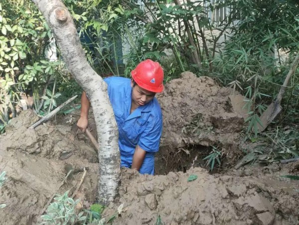 盤根錯節間抽繭剝絲忙搶修。老舊小區的管道鋪設往往無章可循,隱匿于綠化樹下的比比皆是。宿遷銀控供水公司管網部的馬振接到報修后,緊急趕往府苑小區現場,水從一片竹林滲出,成片綠植生長多年,根系發達且盤根錯節,只能人工用鐵鍬一點點開挖查找漏水點,身上、臉上是汗水,褲腿是泥水,和著稀泥,樹根很滑,一根根挖斷,慢慢剝離出管道,緊急搶修好,帶著一身泥濘,趕赴下一個搶修點。
