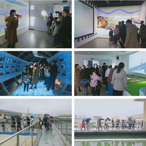 十點,活動正式開始。首先參觀水文化展示館。帶著對探究水知識的向往,大家走進了水的世界。每個人都很期待,特別是孩子們興奮不已,從論水、制水到節(jié)水各個展區(qū),從“無源之水”、“萬源之源”、“水脈里程”到“城市靜脈”、“制水工藝”、“天網(wǎng)神眼”各個展項,大家都駐足認真觀看、耐心傾聽講解。由于雨天路滑,原定的參觀制水工藝本欲取消,但是大家熱情高漲,紛紛要親身感受自來水的制水工藝流程,于是再三強調(diào)了安全問題,大家相扶相攜,跟隨制水部同事,有序進入二水廠四期生產(chǎn)區(qū)。慢慢登上池體,一池池碧波、一道道制水工序、一項項規(guī)范的標識、一臺臺生產(chǎn)設備,呈現(xiàn)在眼前,大家不禁感嘆自來水非自來,均是供水人的艱辛換取。