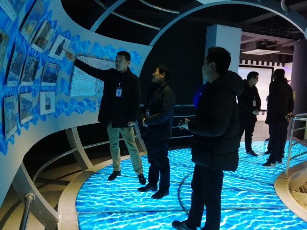 為了讓洋河股份客人深入了解水處理工藝流程,楊坤總監帶領客戶參觀了公司水文化展館,一張張照片記載了宿遷的供水事業及公司一路走來的發展歷程,一個個實體模型刻畫出供水人的辛勞,一幀幀精美的宣傳片展示聯合水務的蓬勃發展。接著,公司總經理助理薛江寧在公司調度中心詳細介紹了供水水源、供水范圍、供水水量、水質標準、近期規劃、水處理流程,并對陳主任特別關注的水處理工藝進行了詳細介紹。之后,陳主任一行在楊總陪同下到生產廠區實地參觀生產工藝,并對臭氧處理工藝進行了深入探討。