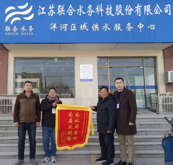 近日,平安社區領導以及物業公司負責人將一面印有“為政府分憂,為居民解憂”的錦旗送至宿遷公司洋河區域供水服務中心,對洋河服務中心在寒潮期間的付出表示由衷地感謝,公司區域供水總監楊坤、中心主任宋衛偉代表洋河中心接受錦旗。
