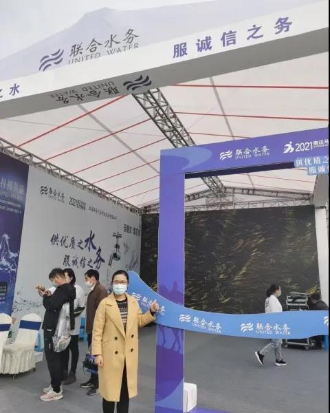 一日千里,顯風采。自3月12日,宿遷市政府召開首屆馬拉松新聞發布會,宿遷公司各項賽事籌備工作突飛猛進,各項活動物資配備到位,并對啦啦隊、旗手隊、服務隊等人員進行了培訓、排練。3月26日公司展位正式對外開放,布局恢弘大氣,服務人員熱情周到,在整個展區獨領風騷,吸引了眾多領取比賽物品的參賽者前來。高端大氣的液晶大屏滾動播放聯合水務宣傳片,多人駐足觀看,有人掃碼了解供水業務知識、有人在特制的相框中拍照留念,煞是熱鬧,起到了非常好的宣傳作用。