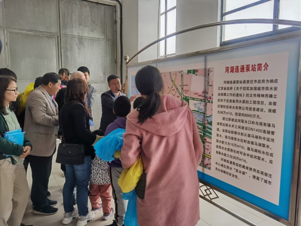 水是生命之源,彌足珍貴,節約用水是人類永恒的主題。今年5月11日—16日是我國第30個“城市節約用水宣傳周”,今年的主題是“貫徹新發展理念,建設節水型城市”。為大力宣揚節水理念,增強市民節水意識,5月15日,江蘇聯合水務科技股份有限公司宿遷公司與市住房和城鄉建設局、宿遷日報社共同舉辦了“一滴水的旅程”水廠開放日直播活動。參加活動的有熱心的市民代表、學生代表,還有市綠色環保協會的志愿者們,共計40余人。小雨紛飛,依然沒能阻擋大家探秘自來水的高漲熱情。上午8:30,從宿遷日報社集中乘車出發,大家一路歡聲笑語,直奔第一站——駱馬湖飲用水源地。途中,市住房和城鄉建設局供排水中心朱泉主任為大家分享了一些節水小知識,孩子們踴躍提問,增長了節水知識和認識。到達駱馬湖水源地,望向浩瀚飄渺的駱馬湖,煙霧縈繞,一望無際,大家紛紛表示駱馬湖是宿遷人的母親湖,保護水源,就是保護城市命脈。在河湖連通原水泵站,大家參觀了送水泵房,聽取了該泵站的詳細介紹。