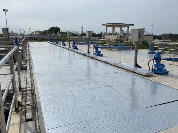 (圖2:二期沉淀池頂嶄新的不銹鋼蓋板)