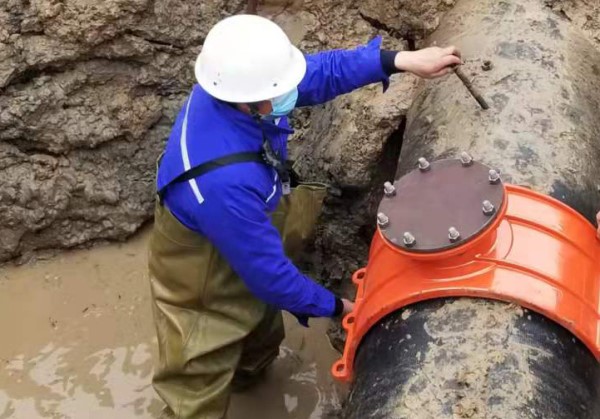 “這里水管被挖壞了,家里也停水了,你們趕快安排人過來維修啊。”用戶需求就是命令,搶修就是責任。面對一個個報修電話,維修人員迅速響應,立即進行現場勘測。遇破損較大,維修復雜的情況,還需臨時借調挖掘機,綜合各方力量,全力搶修保供水。凜冽寒風之中,混合的泥水早已浸透搶修人員的衣服、鞋子,但維修人員依然蹲在泥坑里有條不絮地進行著割管、連接、上螺絲等各道工序。