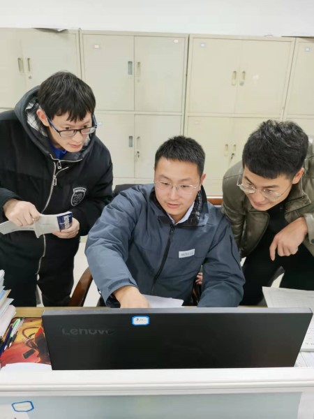 (圖1:單江耐心為新員工講解施工過程中要點)