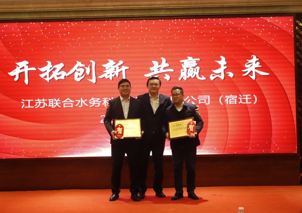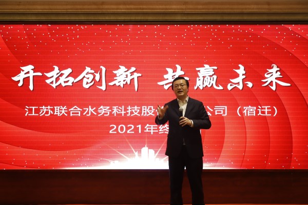 牛去虎來辭舊歲,人壽年豐迎新春。2022年1月26下午,江蘇聯合水務科技股份有限公司2021年總結表彰大會在運河金陵大酒店圓滿召開。聯合水務常務副總裁劉猛先生、聯合水務運營管理中心總經理王歡先生親臨大會現場,宿遷公司部分中層以上管理人員、先進員工及員工代表參加了會議,會議由聯合水務宿遷區域副總經理趙軍主持。會上,回顧了過去一年的工作,總結經驗,分析不足,對新的一年進行科學謀劃,探討新思路,開拓創新,共贏未來。同時,本次大會對2022年先進部門及先進員工進行了表彰和獎勵。