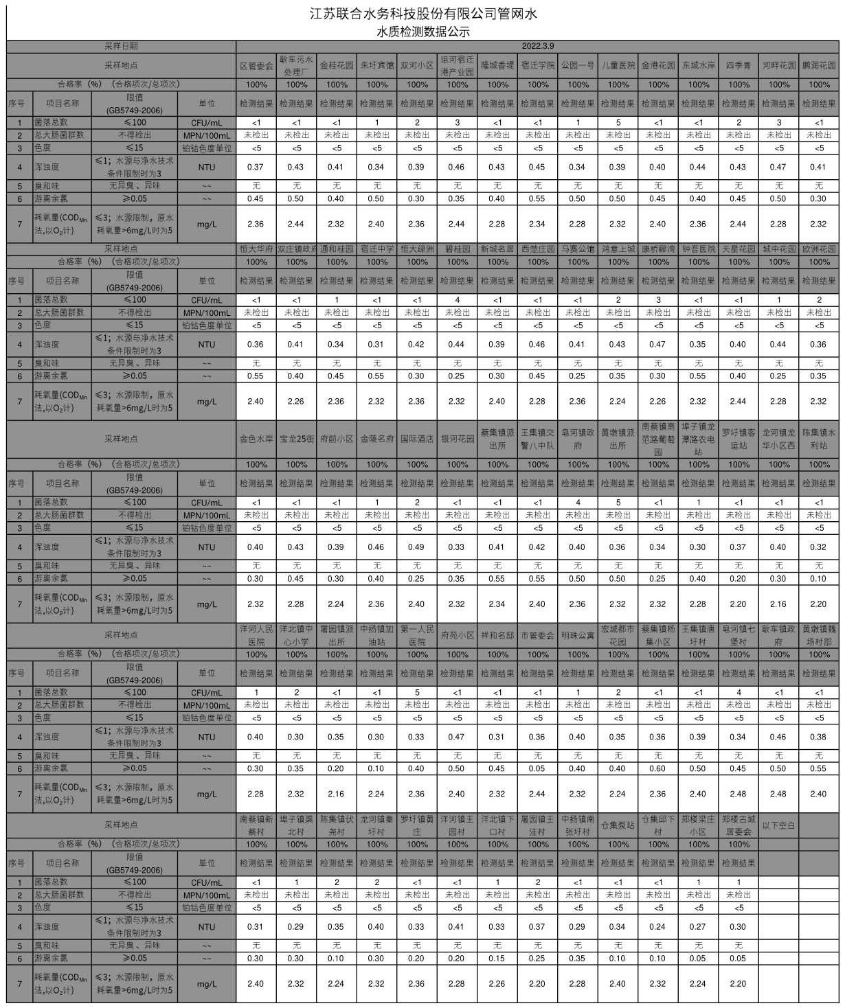管網水半月公示(2022年3月上半月)
