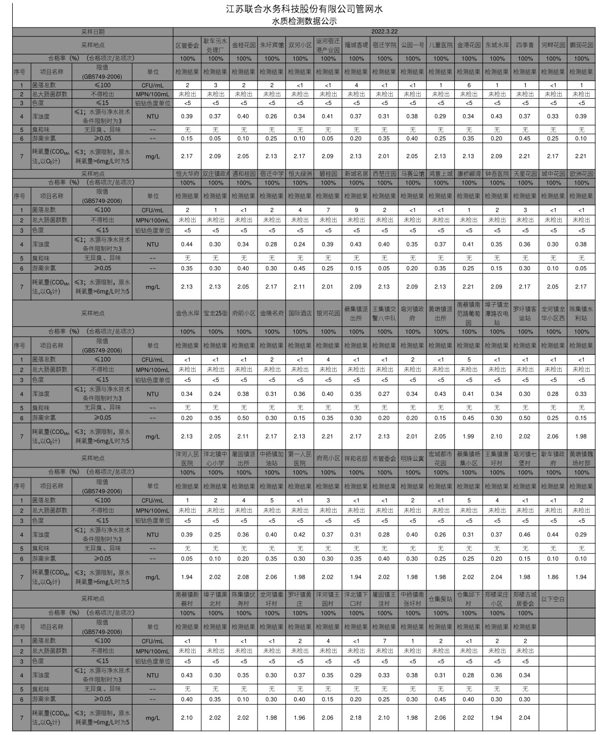 管網水半月公示(2022年3月下半月)