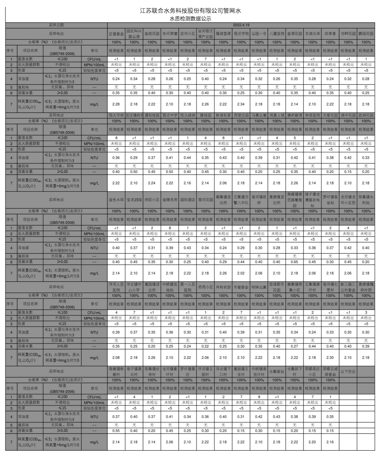 管網水半月公示(2022年4月下半月)