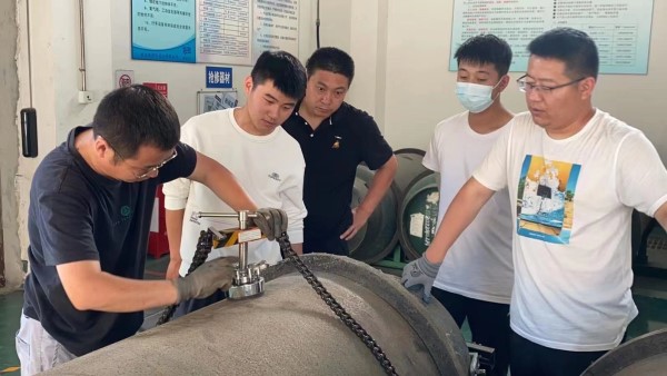 隨后,一行人員來到氯庫現場,由講師給大家介紹應急工具的原理及使用方法,通過實際操作來提高員工們面對液氯的應急能力。應急工具包括正壓式呼吸器和搶修工具,雖然很多員工都會使用這些工具,但是或多或少存在一些不夠規范的地方。講師通過自身的演示讓學員們記住工具使用的每個步驟及其意義,并要求所有學員全部實際動手操作一次,務必做到所有人都能規范使用。