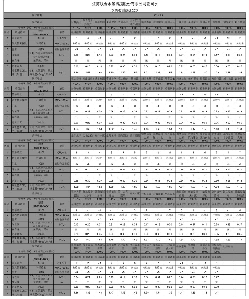 管網(wǎng)水半月公示(2022年7月上半月)