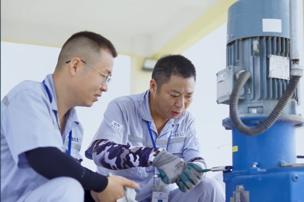 連日高溫高濕天氣下,設備儀器也容易“中暑”,機修工們提前對設備儀器進行全面的維護保養,增加巡檢的次數來保障設備正常運行。一天下來,每人平均日行近2萬步,工作服濕了又干,干了又濕,一如他們的腳步,循環往復。烈日下,該公司設備維修主管周德良正熟練地在二水廠攪拌器旁進行檢修,幾分鐘之后,他的工作服被汗水浸透。對于2004年入職的周德良來說,今年是他保障夏季高峰供水的第18個夏天,18年來,水廠規模不斷擴大,供水設備也不斷升級變化,一直未變的是,以周德良為代表的一線水務人,始終用腳步丈量著炙熱的土地,守護供水安全。