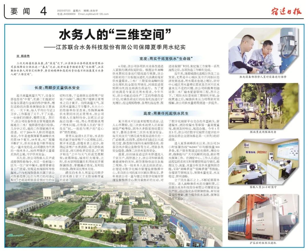 三伏天踏著熱浪來襲,在“蒸籠”之下,江蘇聯合水務科技股份有限公司在保障安全供水這一“基點”之后,就開始著手繪制今夏“坐標圖”,江蘇聯合水務人用堅定的腳步、務實的精神和高度的責任感不斷拓展夏日水務人的“三維空間”。