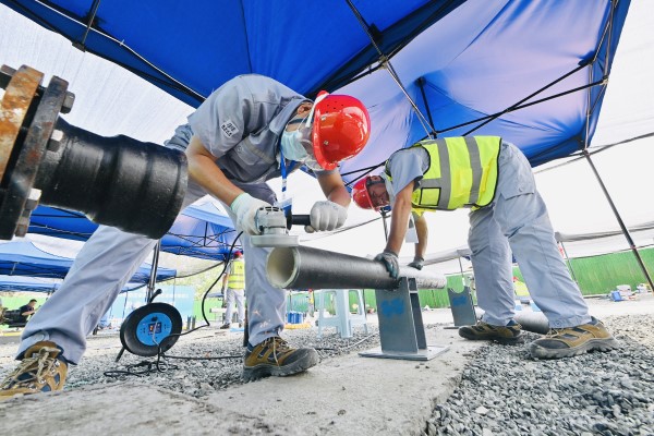 夏季高溫,管道故障多發(fā)、維修任務(wù)重,遇到緊急搶修,便是一場與時(shí)間較量的硬仗,真實(shí)的作業(yè)環(huán)境要比模擬賽場復(fù)雜嚴(yán)峻得多。賽后,參賽選手陳國興提及本次比賽時(shí)坦言,盡管在工作中已經(jīng)算得上是“身經(jīng)百戰(zhàn)”的老員工,但面對比賽還是會有些緊張,比賽中管材的選擇是否正確、管內(nèi)壁是否擦干凈、尺寸計(jì)算是否合理最終都會影響比賽結(jié)果。比賽不但考驗(yàn)選手的技術(shù),還考驗(yàn)選手的心理素質(zhì),比賽現(xiàn)場也會有一些臨時(shí)的突發(fā)情況,這就需要選手們靈活應(yīng)對。