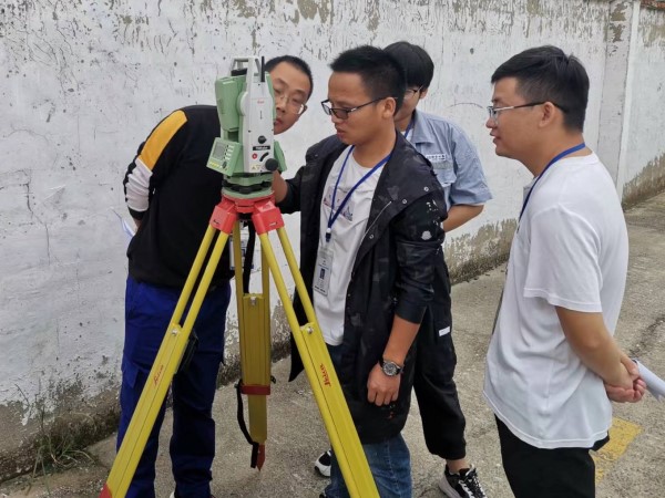 最后一個學習的是測量工作中最全能的儀器——全站儀,培訓初期,我們初步了解了全站儀的多種功能,包括測量定位、測量高差、距離、轉點等,在上手階段,全站儀的找平成了我們面對的最大問題,不同于水準儀,全站儀的找平氣泡有三個,這給我們造成了很大的困擾,經過交流研究、反復實踐,我們成功克服了困難。