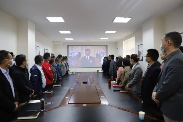 直播期間,全體人員一邊認真聆聽,一邊在筆記本上記下收看的要點和感悟。在兩個小時的收看時間里,集中收看現場秩序井然。中國共產黨第二十次全國代表大會,是在全黨全國各族人民邁上全面建設社會主義現代化國家新征程、向第二個百年奮斗目標進軍的關鍵時刻召開的一次十分重要的大會。在黨的二十大開幕會上,習總書記全面總結了過去五年工作成績和新時代十年偉大變革,為全黨、全國未來五年乃至更長時期的目標任務和大政方針舉旗定向、謀篇布局。