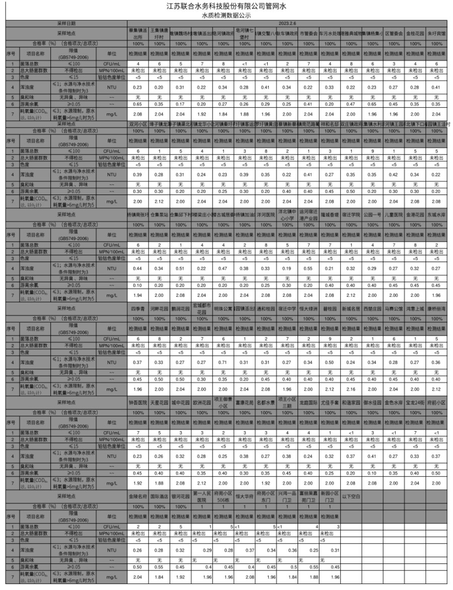 管網(wǎng)水半月公示(2023年2月上半月)