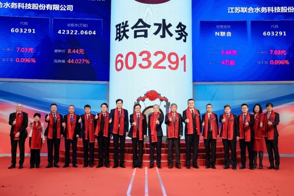 3月27日上午,江蘇聯合水務科技股份有限公司(股票代碼:603291.SH)首次公開發行股票上市儀式在上海證券交易所隆重舉行。江蘇省宿遷市委書記陳忠偉,上海交通大學黨委常委、副校長張安勝,上海證券報社黨委書記、董事長葉國標,聯合水務董事長、總裁俞偉景等領導共同為聯合水務股票交易鳴鑼開市。來自政府、股東、聯合水務、中介機構和媒體等百余名嘉賓參加了上市敲鑼儀式,共同見證了聯合水務掛牌上市的歷史性時刻。