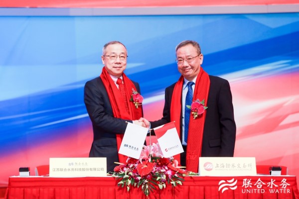 儀式上,聯合水務董事長兼總裁俞偉景與上海證券交易所黨委委員、副總經理董國群簽訂了《上市協議書》。