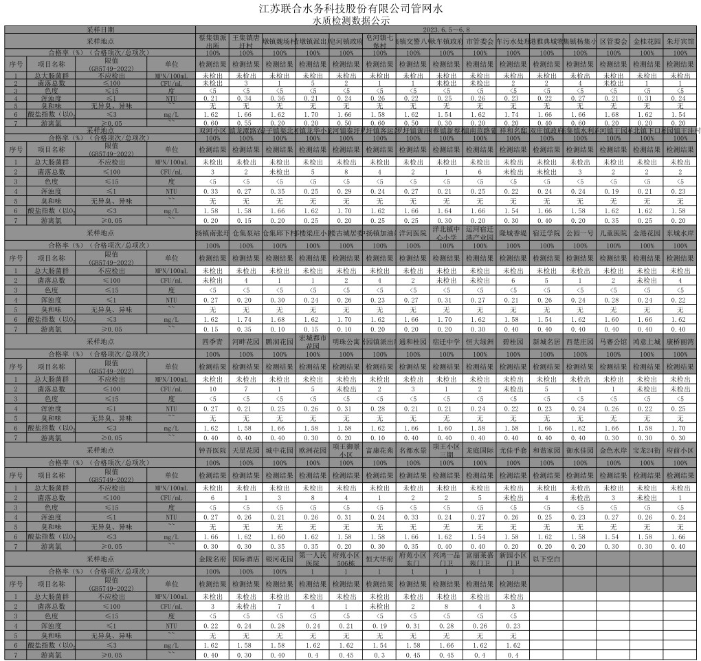 管網水半月公示(2023年6月上半月)