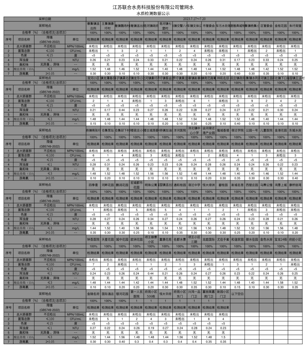 管網(wǎng)水半月公示(2023年7月下半月)