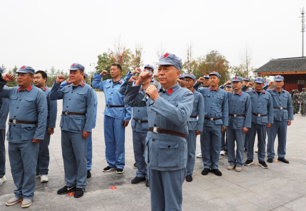 追尋紅色足跡,重溫入黨初心。在半城鎮,大家穿著統一的紅軍軍服,懷著對紅軍將士的敬仰之情,徒步前往大王莊紅色教育基地,用重走長征路的形式,感悟長征精神。大王莊在抗戰時期曾是中共淮北區黨委、淮北蘇皖邊區行署、新四軍第四師和淮北軍區司令部所在地,被譽為“蘇皖紅土地,淮北小延安”。走在教育基地青灰的舊石板路上,映入眼簾的是泥土墻、茅草屋面、柳山石圍墻……基地依托新四軍四師師部舊址改建而成,再現了彭雪楓、劉瑞龍等老一輩革命家生活戰斗的歷史場景。在濃厚的革命氣息中,大家駐足觀看,感受著共產黨人的初心使命,追憶著黨的崢嶸歲月,從革命先驅的奉獻精神中汲取前進的動力。