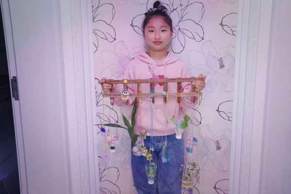 通過手繪塑料片、多彩毛線、花盆做成捕夢網(wǎng),掛在墻上,讓家多了一份趣味,在手工制作過程中,也讓孩子體會到塑料可以產(chǎn)生的變化,養(yǎng)成塑料可回收的意識,踐行環(huán)保理念。
