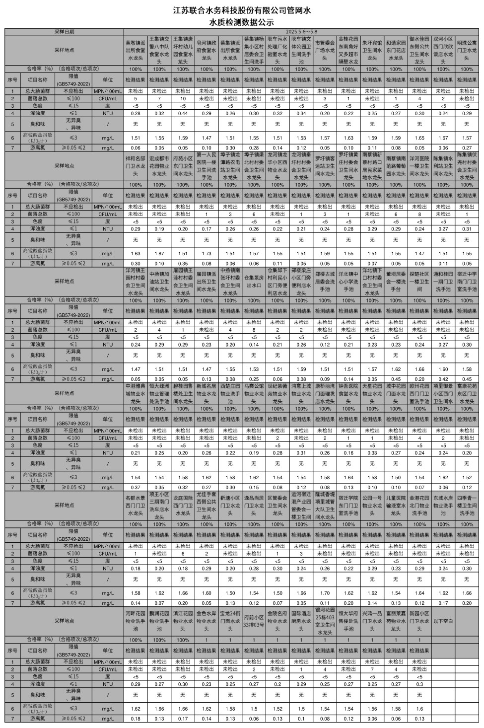 管網水半月公示(2025年5月上半月)
