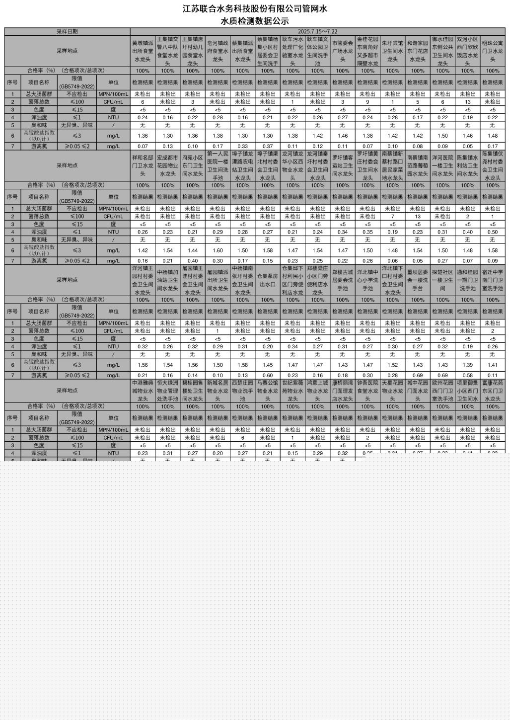 管網水半月公示(2025年7月下半月)