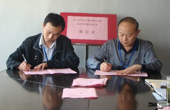 此外,夏總還與相關領導簽訂了《加強和改進企業作風建設責任書》,要求公司從上至下揚風正氣,堅決杜絕“推諉扯皮不作為、交辦工作拖拉甚至久拖不辦、紀律松懈自由散漫、甘于現狀不思進取、不講奉獻個人主義、工作不力”六大作風弊端。嚴格遵守宿遷市機關作風 “六條禁令”等內容,嚴格執行各項管理制度,加強自身建設,推動行風工作。