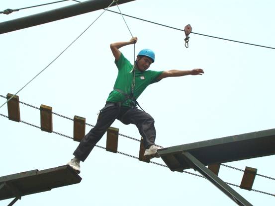 高空斷橋教會了我們勇敢,給了我們勇氣。這次體驗讓我們明白,那些困難大張著嘴等著吞噬我,看似不可能駕馭,不可以完成,可是,當鼓起勇氣做的時候才發現,所謂困難,也就是只紙老虎。