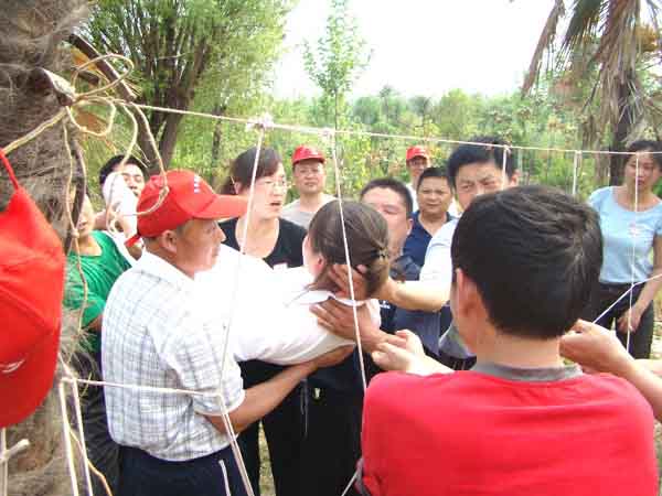 這一次,我們開始認真的討論實施計劃,由過去鎖定一組,改為分組同時進行。我們四個女隊員分了兩只洞。這下,再也不敢浪費資源了,每個動作都十分謹慎,四個人順利過網,那一組,男同事們也一個個依次遞過去。