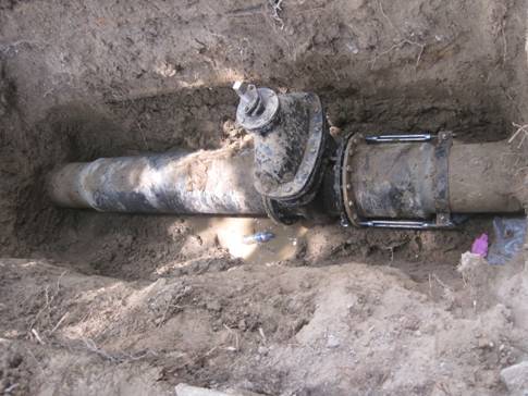 主管道閘閥關閉以后,如何盡快搶修管道恢復供水是當前最大問題,現(xiàn)場看到的漏水點有好幾處,很難快速確定真正的漏水點。為了保障供水安全,盡快恢復受損管道供水,根據(jù)現(xiàn)場管網(wǎng)分布,決定在300水泥主管道上加裝一只DN400閘閥,這樣可以關閉閘閥便于維修對不會對附近的正常供水產(chǎn)生較大影響,為維修創(chuàng)造更有利的條件。由于正值農(nóng)忙時間,很多輔助工都回家農(nóng)忙去了,為了加快維修速度,公司領導協(xié)調工程部的安裝施工隊,抽調各個施工隊的精兵強將來保障施工進度,在時間緊任務重的情況下,管網(wǎng)部的員工緊密配合,維修現(xiàn)場部門領導和老同志也紛紛親力親為,不怕臟,不怕累,經(jīng)過一夜的苦戰(zhàn),圓滿地完成了維修任務。
