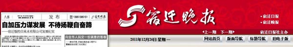近年來,宿遷銀控自來水有限公司投入9000萬元,建設DN100以上管網60公里,使我市供水面積增加了25平方公里,增幅達27%;投入2.2億元,建設備用水源和水廠各一座,使供水能力增加6萬噸/日,增幅高達42%;供水人口增加12萬人,增幅32%;建成三級實驗室1座,為中心城市的供水安全保障奠定了堅實基礎。