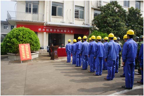 4月13日上午9:00,市人武部在我公司舉行“2012年供水搶修分隊點驗大會”,宿城區人武部領導對我公司供水搶修分隊20名代表進行點驗,宿遷市軍分區領導出席大會并作重要指示。