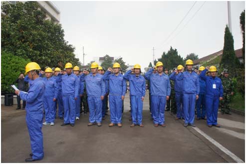 點驗大會議程為:檢驗搶修隊伍、民兵代表帶領隊員宣誓、民兵代表對如何開展民兵工作進行發言表態,我公司代表發言。在隊伍檢驗過程中,鏗鏘有力的點名、應到聲令人熱血沸騰,響亮整齊的宣誓鼓舞人心,充分體現了公司搶修隊伍的風采和精神面貌。