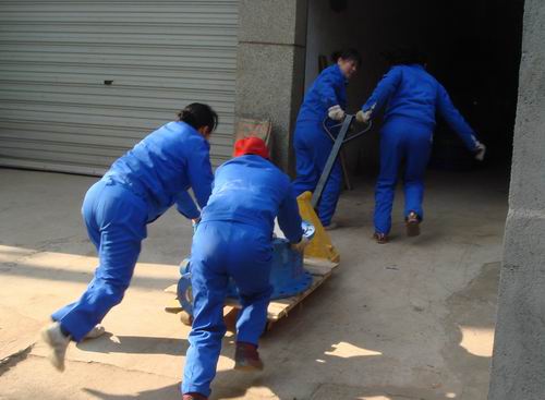 圖4(庫房女員工搬運新貨架 2011年1月19日)