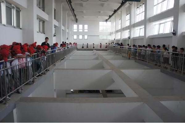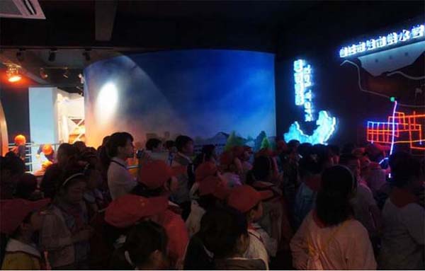 在宿遷市水文化展示館內,小記者們異常活躍,對我們的每一個展項都充滿了興趣,認真聽著解說員的解說,不時地拿出本子記錄下一些內容,爭先恐后地提問,這樣的記者團讓我們看到了明天的希望。供水之路展項讓他們對自來水的處理過程有了一個清晰的認識,明白了看似簡單的自來水原來是經過如此多的工序才通到每個人家中的。參觀節水展區過程中,很多小朋友都在議論,我們國家甚至全世界的缺水話題,紛紛記下一些驚人的數據并表示今后在生活中一定珍惜水、節約水。