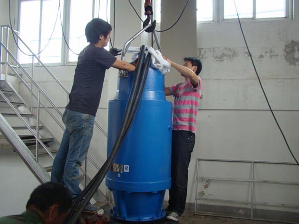 圖為調試完成潛水泵即將下水。