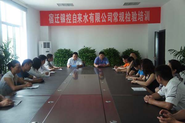 嚴格落實江蘇省住建廳“不合格的水不出廠,不達標的水不進管網”的要求,確保城市安全供水,水質檢測是第一關,為進一步加強水質檢測工作,提高一線生產員工的常規(guī)檢驗操作水平,7月9日下午,宿遷公司組織對制水部的生產人員進行水質常規(guī)檢驗培訓。培訓由公司人事行政總監(jiān)柴亞東主持,水質檢測公司經理葉慎忠主講,近30名生產人員參加了培訓。