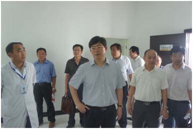 近期,由于氣溫升高,我市水源地駱馬湖內水草瘋長,水質PH值升高,原水水質極不穩定。7月23日上午,在公司總經理夏承光的陪同下,宿遷市副市長呂德明,市水務局局長葛書龍、副局長胡元明等一行領導分別視察我公司的兩水源取水口、凈水廠和泵站,并在二水廠會議室聽取了近期原水水質情況匯報。
