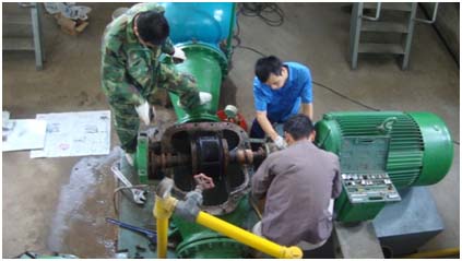 中午大家放棄了午休時間,13:00之前把各種工具配件準備到位,在壓力下調的幾個小時范圍內爭分奪秒,經過一番努力,16:15維修工作全部結束,當機泵正常運轉時,我們才安心洗去一臉的汗水。