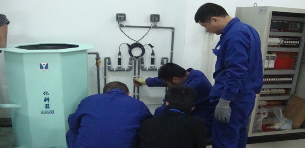 駱馬湖泵站的二氧化氯發生投加設備經過一段時間的試運行,總體達到了預期目標。為進一步強化應急管理,調度中心工作人員根據試運行效果對二氧化氯發生投加設備及管線進行了優化改造。