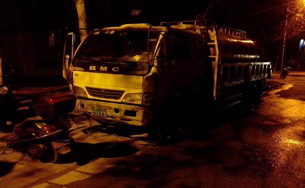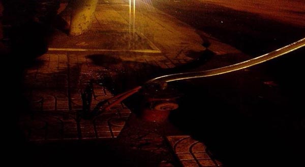 黃河北路和與發展大道之間新鋪設的一條公路上,有明顯的沖水痕跡,當稽查員發現時,施工車輛已基本完工。次日,稽查員對該路段進行了巡查,在發現道路兩側在進行綠化施工后,斷定晚間一定還會出現違章用水行為。于是,在晚間開始了路段蹲守,為使蹲守不被發現,隊員沒有駕車,而是各自騎著自己的摩托車。果然,在23時許,沖水車輛出現了,隊員馬上進行了尾隨跟蹤,沖洗車輛在距施工路段西側約0.5公里處的路邊停下。