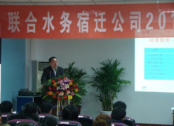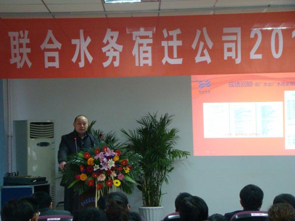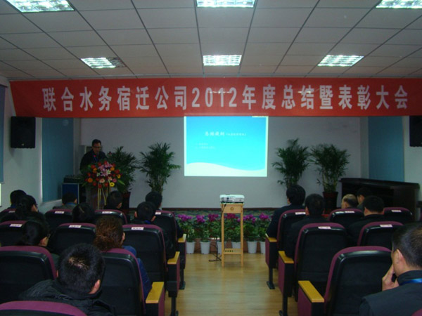 劉總在總結發言中說:過去一年,宿遷公司業績驕人,成績源于團隊的共同努力,不僅本職工作完成出色,而且能團結一致,共同解決困難,保障供水安全。此外,2012年度的項目建設工作也取得了突破,耿車污水處理項目、城北污水處理項目的簽約,初步實現了聯合水務多年來追求的,在某個城市實行“供排水一體化”的奮斗目標。但是,宿遷公司也要在營業款的及時回收、業務拓展和供水安全方面再下功夫,不斷提高自已的運作能力