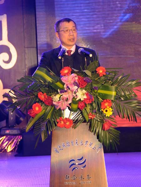 晚會正式開始前,一部記載著聯合水務集團歷年發展的短片讓在場的每一位聯合水務人熱血沸騰,激情高漲。緊接著,集團總裁俞偉景先生發表了熱情洋溢的新年賀詞,充分肯定了2012年度公司在管理、建設、項目和市場等各方面取得的驕人業績,滿懷激情地展望了2013年的發展前景。